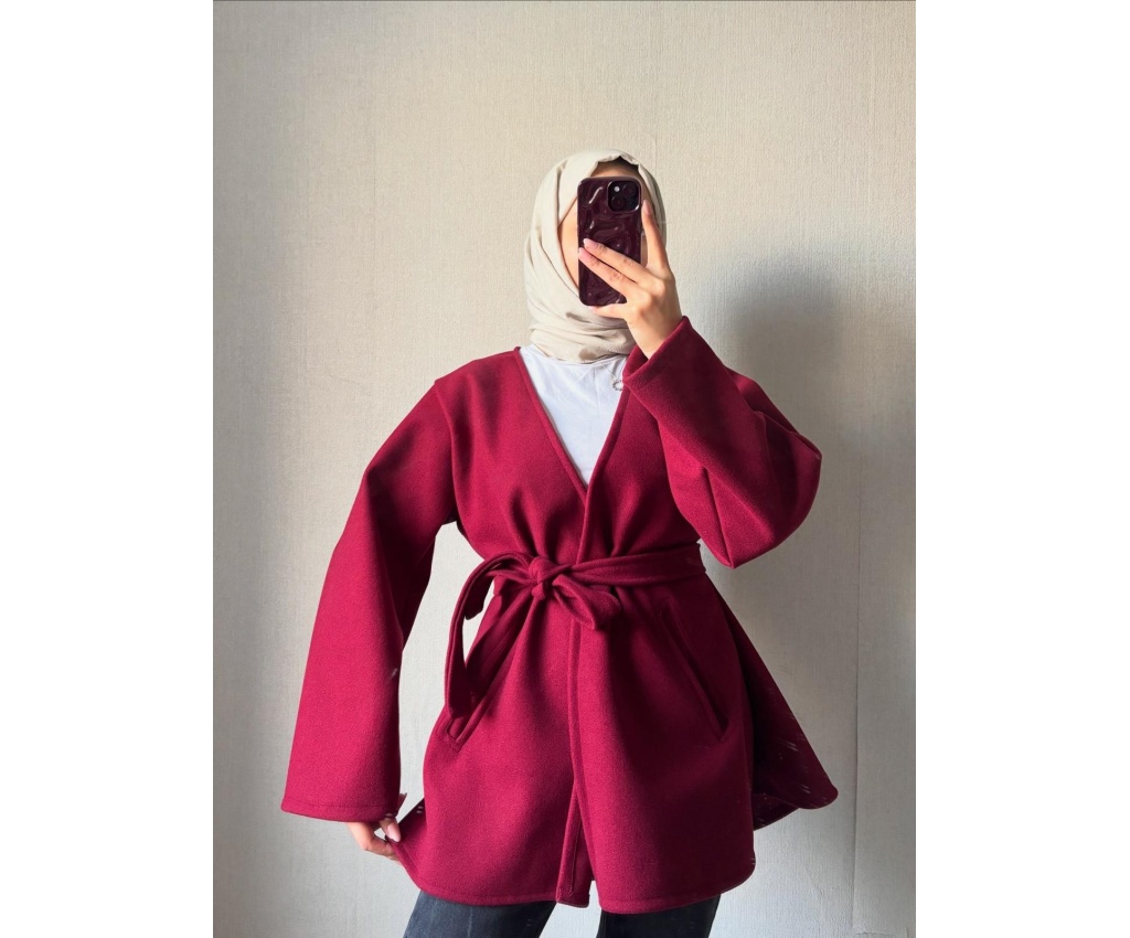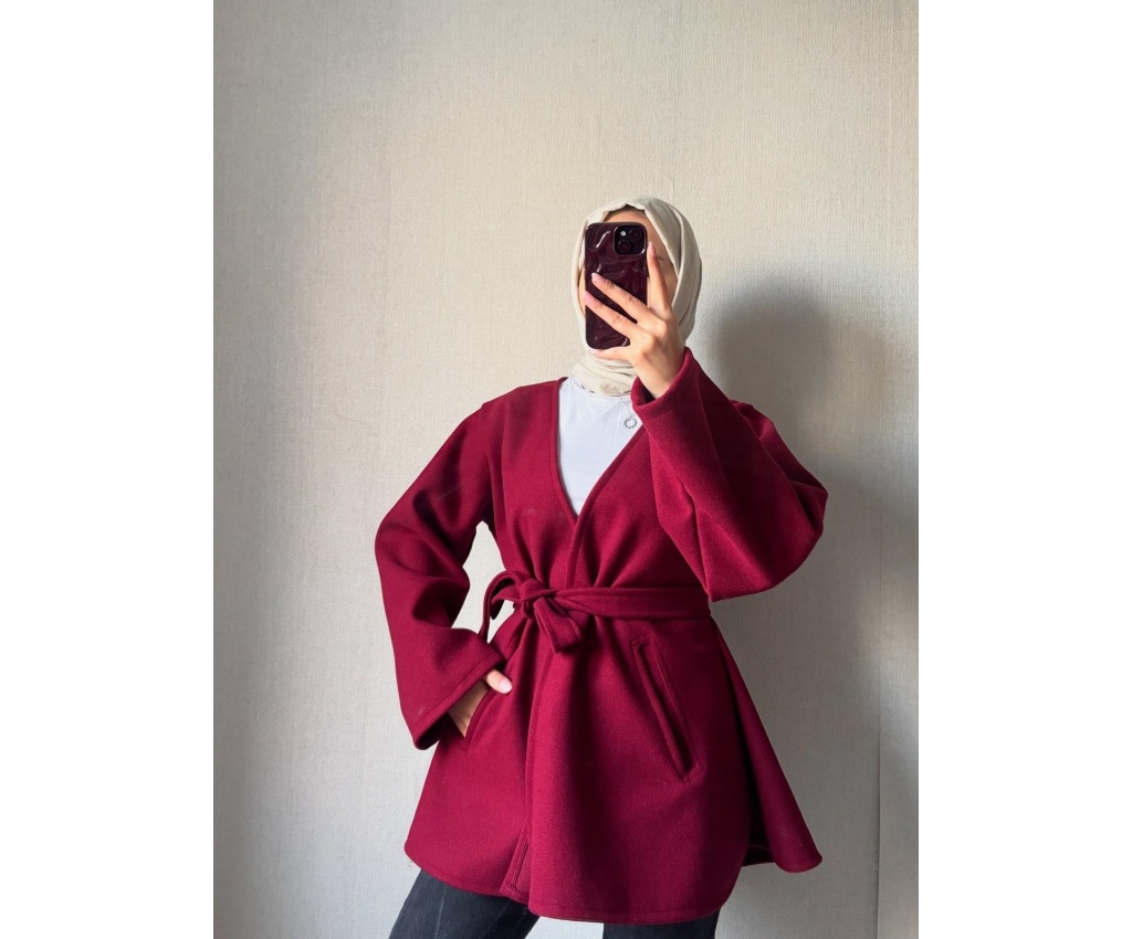 Geniş Yaka Cepli Kaşe Bordo