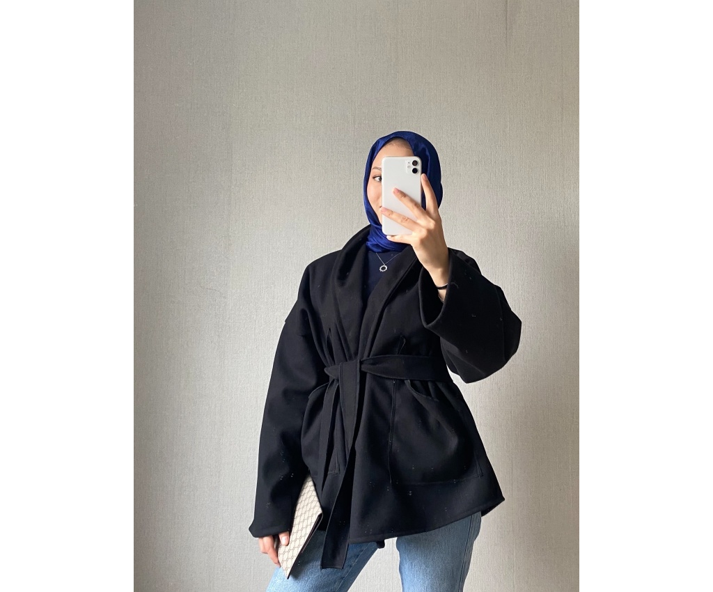 Dik Yaka Cepli Kaşe siyah
